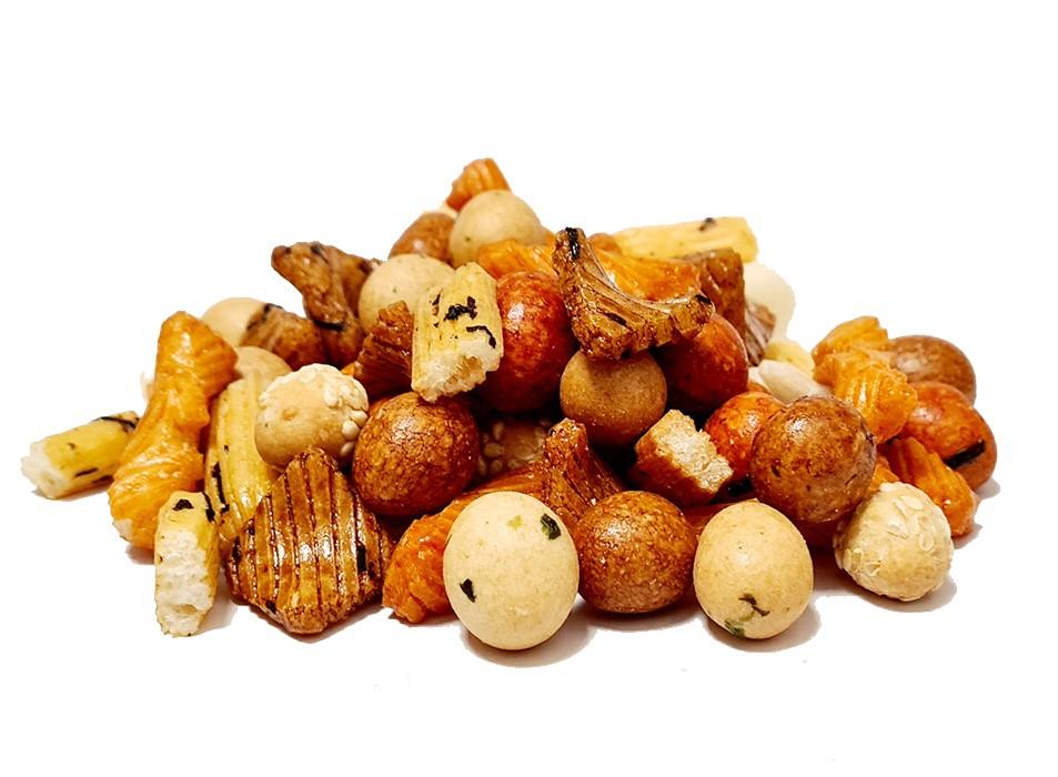 Rice (57%) WHEAT Flour, PEANUT (7%), SOYA Sauce (7%), Water, SOYA Beans, Salt, WHEAT, Sugar, Modified Maize Starch, Corn Syrup, Maltodextrin, SESAME Seeds, Seaweeds, (0.4%), Colours; (Paprika Extract, Plain Caramel, Chlrophyllin), Modified Tapioca Starch, Glucose Syrup, Yeast Extract, Chilli Powder.